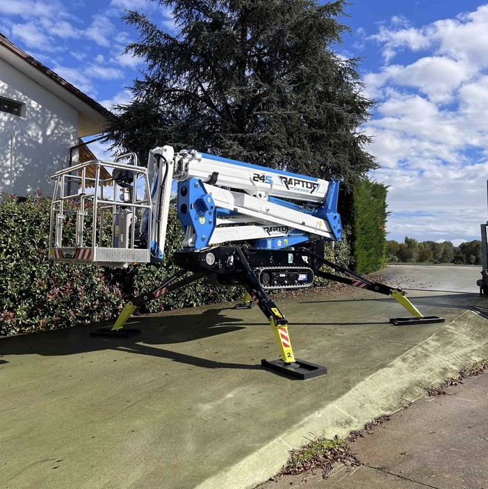 Socage, der Hersteller des RAPTOR 24S, hat sich stets zum Ziel gesetzt, qualitativ hochwertige und leistungsstarke Arbeitsbühnen herzustellen, die für den Bediener einfach zu handhaben sind. In dieser Hinsicht sorgen die serienmäßige Abstützautomatik und die Homefunktion für maximalen Komfort und Sicherheit bei der Arbeit.